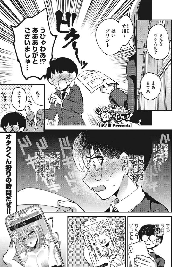 【ハッピーってセックス!】今!ここで!アナタとセックスがしたいの!!どうしても!理解ある童貞くんたちのおかげで、彼女たちは今日も幸せです♪エロ漫画は兄貴のアカウントを無断で借りてたしなむ、これ令和のギャルの鉄則! そうしてエロ漫画を楽しむ日々で、ギャルの横川さんは当然の疑問にたどり着いた。無●正のち〇ぽって、どうなってんだよ!エルフを蹂躙するオークみたいな鬼ち〇ぽが見てみてえ! その一心で目についたオタクくんをホテルへと連行。でもエロ漫画みたいに簡単に気持ちよくはなれない現実に、二人の心は中折れ寸前!?(見たい!知りたい!勃たせたい!!)ちょっと強引な方が好き? それとも恥じらいながらがいい?どこかパワフル&コミカルな4作品を収録した、著者初WEBコミックス!<収録作品>見たい!知りたい!勃たせたい!!/挿入られたいんだよ!!/ノーガード・ノーセックス/この物語はフィクションです