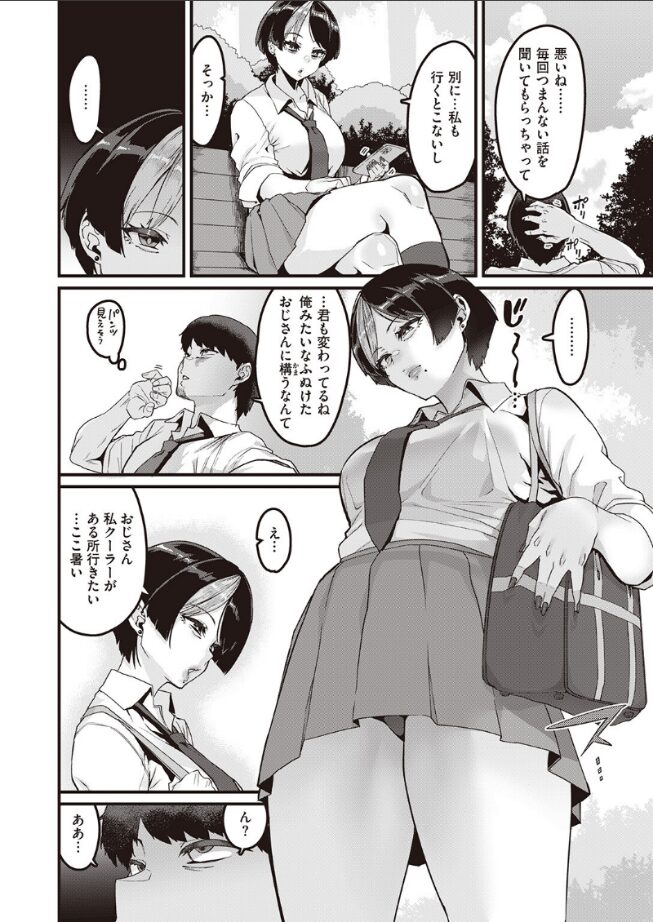 「おじさん、私クーラーがある所行きたい……ここ暑い」折角クソ会社を辞めたのに、わざわざスーツに着替えて駅まで行ってしまう始末……。そんな未だに社畜根性の抜けきらないおじさんの話し相手は、なんと現役制服女子の美紀(みき)ちゃん。だるーい雰囲気ムンムンの女のコだけど、今日も今日とて愚痴を聞いてくれている。そんな彼女が突然、家に来ることになったとしたら……!?ハードエロスの化身が描く、叙情と肉欲の物語!!