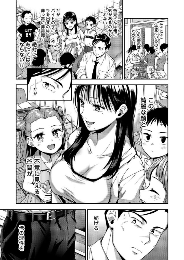 「『好き』っていうのは、『セックスしたい』って意味ですよ」とめどない衝動、催す性欲、壊される理性。塾講師とJDアルバイト、禁断の残業を描く長代ルージュの最新作!「ふたりきりになるのは危ういと思っていたんだ」吉倉(よしくら)が先生として働く塾で、事務のバイトをする女子大生・逸見(へみ)。セミロングの綺麗な黒髪と人当たりもいい可愛い子。そして屈んだ時に服からのぞく深くて長い谷間。様々なハラスメントが取り沙汰される昨今、大人として講師として人一倍気を遣う吉倉をよそに、年下の逸見はさりげなく奥さんや彼女がいるのか聞いてくる。加えてフリーで彼氏募集中だと目の前でアピールも…。妖しく吸い込まれそうな瞳。逸見の気持ちを察するが、吉倉にはどうすることもできない。しかしふたりきりの残業で、ついに逸見は好意を真っ直ぐ告げる。逆セクハラになるからとそれでも笑って躱す吉倉。だけどもう逃さない。逸見は吉倉の手を取り、谷間にあてがう。ふっくらたぷたぷ、柔らかくデカすぎる巨乳の間に指が吸い込まれていく。綺麗な顔と胸から必死に目を逸らし本能に抗うも唇まで奪われてしまう。舌と唾液が絡む濃密なキスで吉倉はついに逸見の服を脱がし、たわわに実った爆乳と乳首にむしゃぶりつく。そして逸見にズボンを下ろされ、耳元囁きと手のひらでねっとり亀頭コキと乳首合わせの3点責め。それでもなお、吉倉はその強い理性で抵抗するが…?