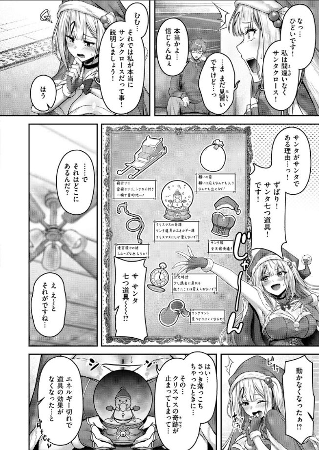 《サンタを召喚する方法》というタイトルの怪しいネット動画。アホらしいと思いつつも、解説通りの手順を試してみたら、イブの晩に美少女サンタがやってきた…!?でもそのサンタ、大事な《サンタ七つ道具》を壊したドジ女で、プレゼントも用意できないという。せっかくサンタが来たって言うのに……でもこのドジ女、身体はすっごくエロいぞ……。ならばお前がプレゼントだ!一晩だけ恋人になってもらってイヴの夜にヤるべきことヤッてもらうぞ!!