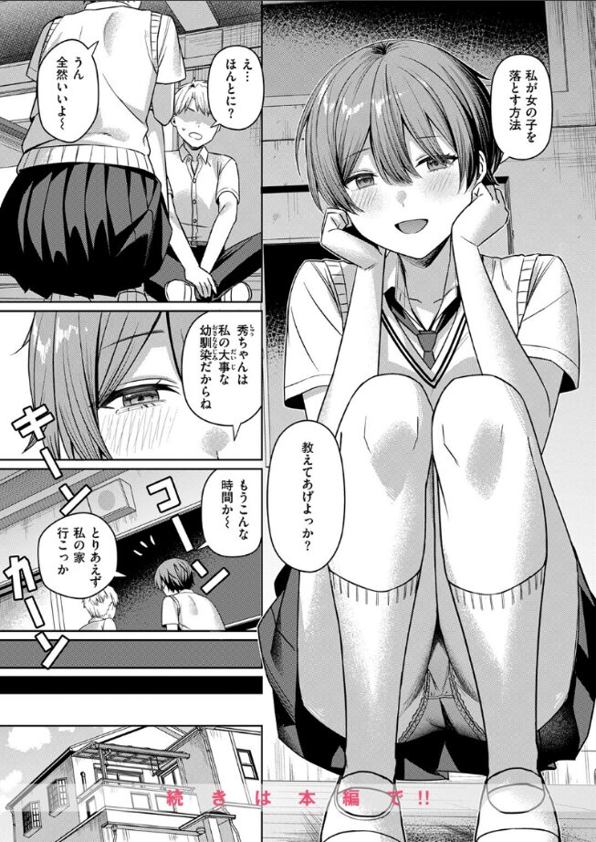 好きなコに告白してもフラれてばかり……そんな悩みを抱える男子・秀(しゅう)。原因は明白。秀が告白する女子たちは、なぜかみんな幼馴染の王子様系女子・鈴香(すずか)を好きになってしまうのだ!しかし、これは全て鈴香の仕掛けた作戦。ずっと自分の好意に気付かないまま、他のコにばかり目を向ける秀に彼女ができてしまっては困る!そう思い秀の恋路を邪魔し続けていた鈴香は、ついに自分のカラダを使ったアプローチ!!女のコとのエッチな経験を口実にしつつ、本当の狙いはただひとつ。今日こそ、ずっと好きだった幼馴染を落としてみせる――