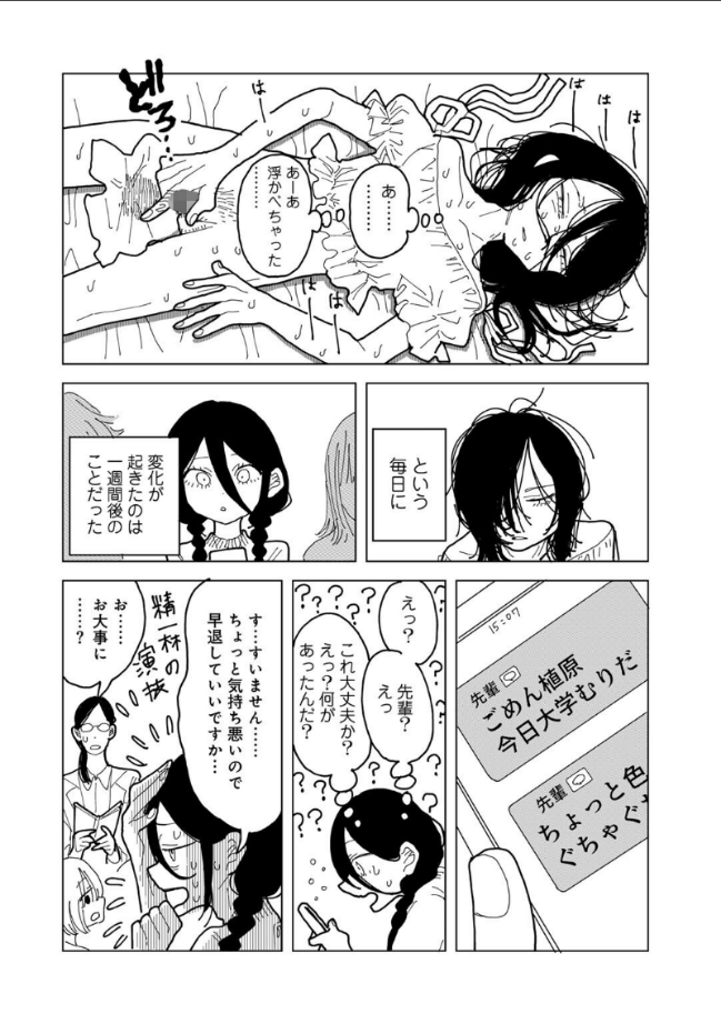 『この女(ひと)を、僕の手で動物にしたい…』X(旧●witter)上で6.2万いいねを獲得した話題作!感傷と激情で心を?きむしる鬼才、覚醒の43ページ!自分の身体が好きになれない、男子大学生・植原。ある日、授業で偶然出会った先輩の女性と話す中で、着ている服を交換することに。服が似合うと言われた植原は、メイクや脱毛などやってみたかったことを少しずつ叶えていき、自分を解放してくれた先輩に、尊敬と同時に劣情を抱くようになっていく。男性と女性の間を揺らいでいる植原のもとに、突然先輩からのSOSメールが届き…?(COMICキスハグvol.4 収録作品)