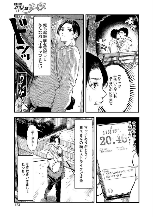 潔癖症で手も繋げない主人公。マッチングアプリで彼女探しをするものの、潔癖がバレるとどうしてもフラれてしまう。それでもめげずに探していると、5才上の女性から連絡があり会いたいという。なんとその相手はいつも恋愛相談をしている美容院の担当だった!?