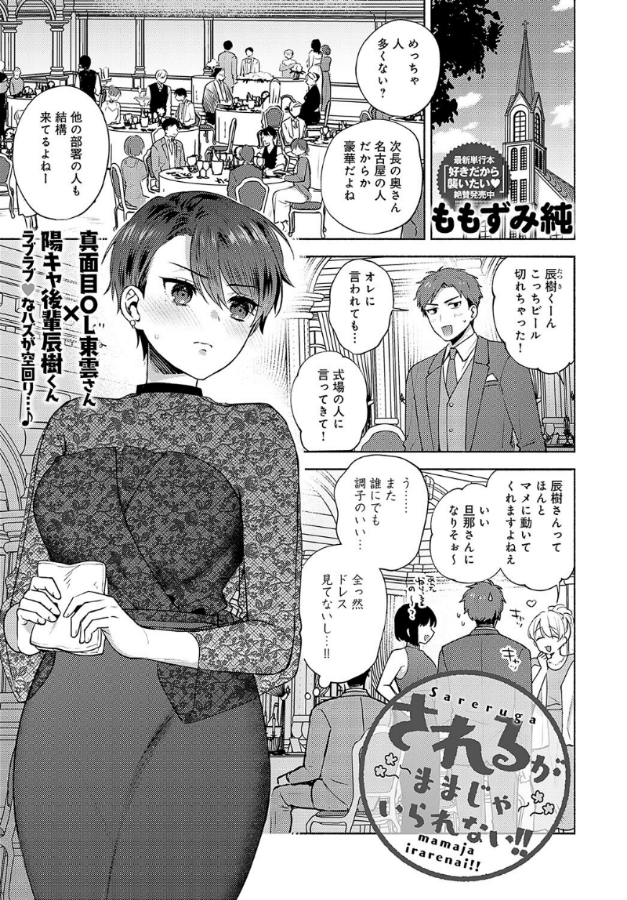 真面目なバリキャリOL・東雲さんは、犬系後輩男子・辰樹くんと秘密のお付き合い中♪ 同僚の結婚式に出席した東雲さんは、いつもと違う華やかなドレス姿。会社ではクールな彼女の変貌ぶりに、普段はあまり交流のない同僚も興味津々となり、東雲さんは同僚にナンパされてしまう。ナンパ現場を目撃した辰樹くんは嫉妬を隠すことができず、余裕を失った彼の様子に東雲さんはドキドキして……。「もう抜ける?」と彼女から提案し、二人はラブホテルへ。 ドレスに身を包み非日常的なムードの中、東雲さんはいつもより積極的♪ 能動的なフェラチオの後は、照れながらも初めてのパイズリをしてくれて──♪あまあまオフィスラブマスター・ももずみ純先生が贈る、ドレスで変貌した真面目な先輩の積極イチャラブエッチ♪