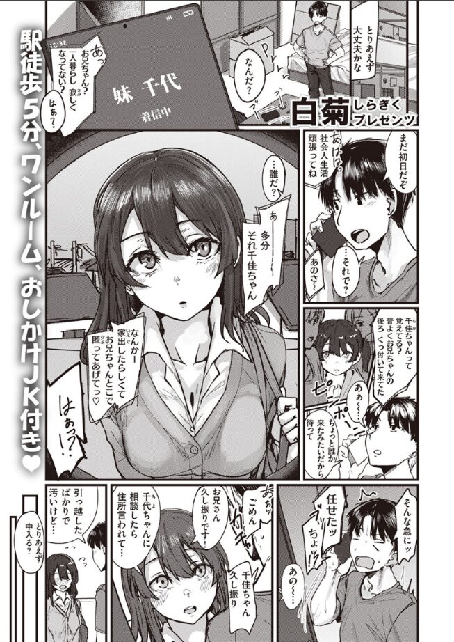 「妹の友達とヤリまくってるのはお兄さんじゃん♪」家出した妹の友達の千佳(ちか)ちゃんを匿ったことをきっかけに、すっかりカラダの関係になったふたり。毎日のように部屋へ訪れる千佳ちゃんから「ここに住んじゃだめ?」と言われてドキリとするが、どうやら親との関係が理由らしい。もちろん大人として断るが「何でもしてあげる」と誘惑されて……。性欲強めの制服女子と本気の中出しSEX♪