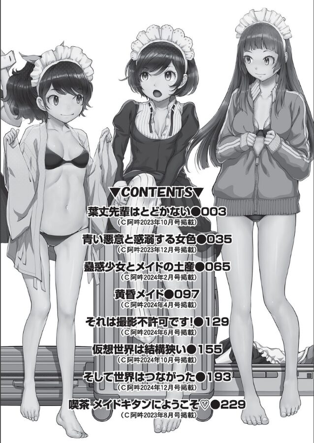メイドになったよ。エロいこと、しよ◆メイド衣装が欲望スイッチを刺激する―――。実力派が描く大人気の’じゃないメイド’シリーズここに完結!メイドコスに身を包む発情女子が8人揃った特厚読切作品集!!【収録作品】・葉丈先輩はとどかない・青い悪意と惑溺する女色・蠱惑少女とメイドの土産・黄昏メイド・それは撮影不許可です!・仮想世界は結構狭い・そして世界はつながった・喫茶 メイドキタンにようこそ◆