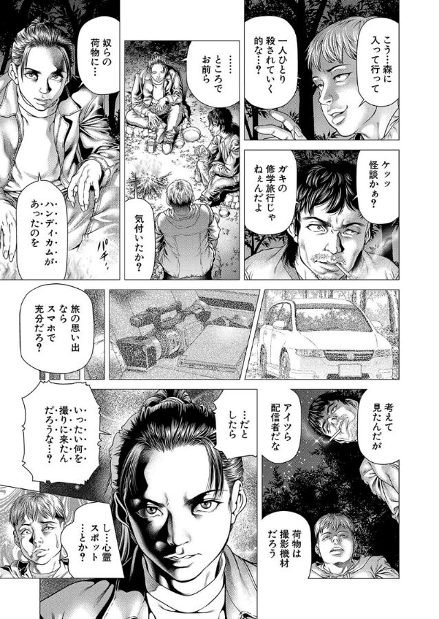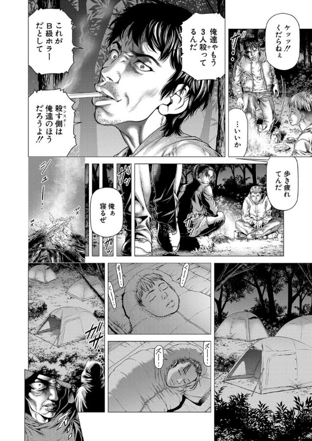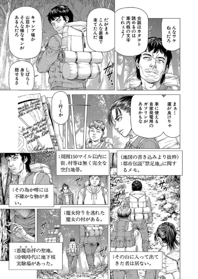 連続殺●を犯した男達は、他国のスラムへ逃げ込むために森を通る事になる。そこは魔女の村があるという噂が流れる禁足地だった。森の中で夜を過ごしていると、仲間の一人が魔女に襲われ、行方知れずになってしまう。彼を探す者、逃げる者と別れる中、逃げる者を追って魔女が襲い掛かりにくる。