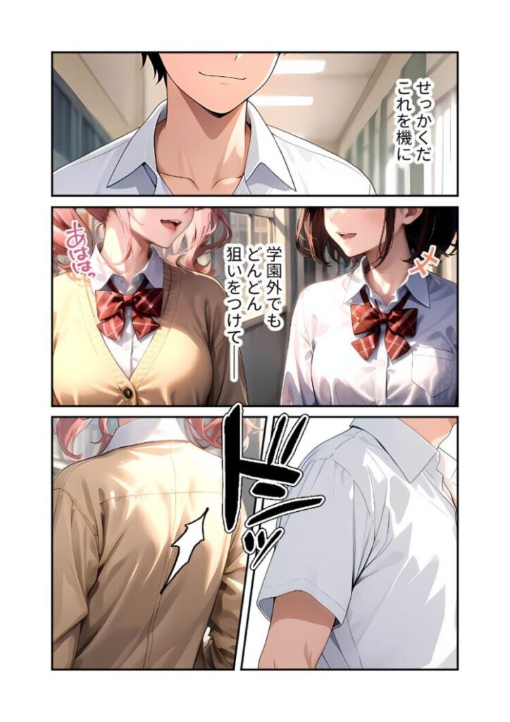 高嶺の存在的なクール美女を攻略した影山は、再び手に入れた力を使って学園性活を満喫する日々を送っていた。そんなある日、廊下ですれ違いざま方がぶつかった後輩ギャル。「チッ…どこ見てんだよ、陰キャメガネ」舌打ちと共に言い放ったその後輩は、次の瞬間には友人に笑顔を向けていた。(どうやらまだまだ学園内にも、ヤりがいがあるのが残ってるみたいだ)影山は友人と楽し気に話すギャルへと狙いを定め――「ヤダ…上も下も同時にとか…頭っ、おかしくなっちゃう…ッ」本編52P+AIイラスト131P収録!【注意事項】※本作品のシチュエーションは全てフィクションです。登場する人物や設定等は、すべて架空のものとなります。※この作品内に登場するキャラクターは全員20歳以上です。※本作品はStable Diffusionを使用して制作しております。※犯罪、その他違法行為を美化または助長する意図はございません。
