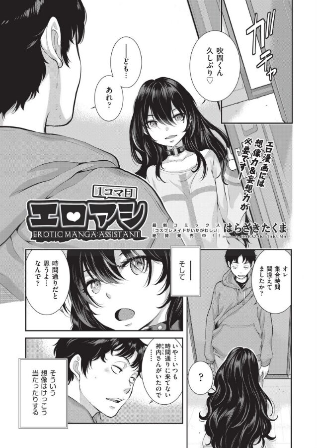アシスタント先のエロ漫画家の家に、いつもより2時間遅い時間を指定されたが間に合うように到着した吹間くん。毎回ほぼ必ず遅刻する神内さんは遅れるどころか自分よりも先に来ていて自分が到着する時間まで先生とエロい事をしていたのでは…・?と妄想する…。先生の描く漫画の作品に登場しいつも犯●れている女の子に似た神内さんに作業の指示を出した後、別室で仮眠をする先生。話が終わると神内さんにエロい妄想をしていたでしょ?と妄想どおりにエロく責められ…!?
